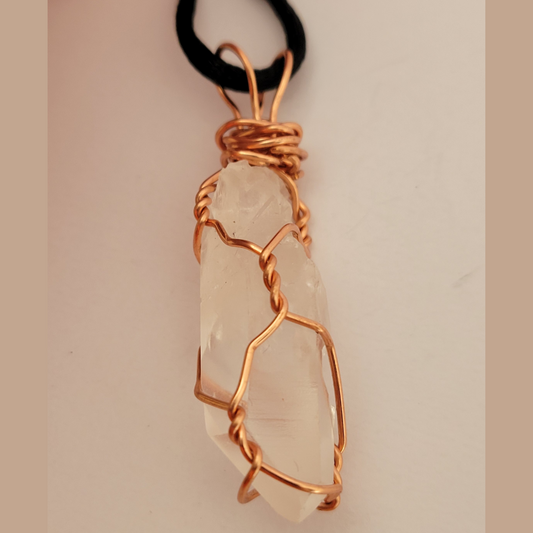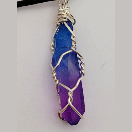 Quartz crystal (artificially colored) crystal strung with simple dainty chain