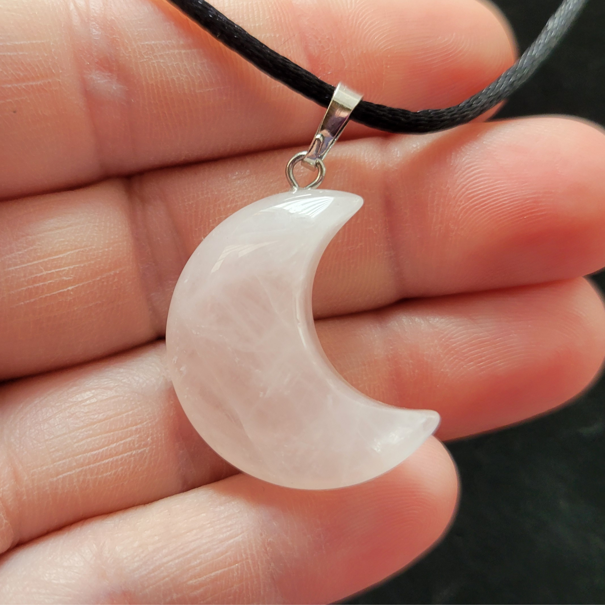 ๐ Design and color will vary slightly โ intuitively chosen This polished Rose Quartz crescent moon pendant radiates soft, loving energy and hangs on a silky black cord. Rose Quartz is known as the stone of unconditional love, promoting self-compassion, emotional healing, and harmony. The moon shape adds a touch of feminine magic and intention.