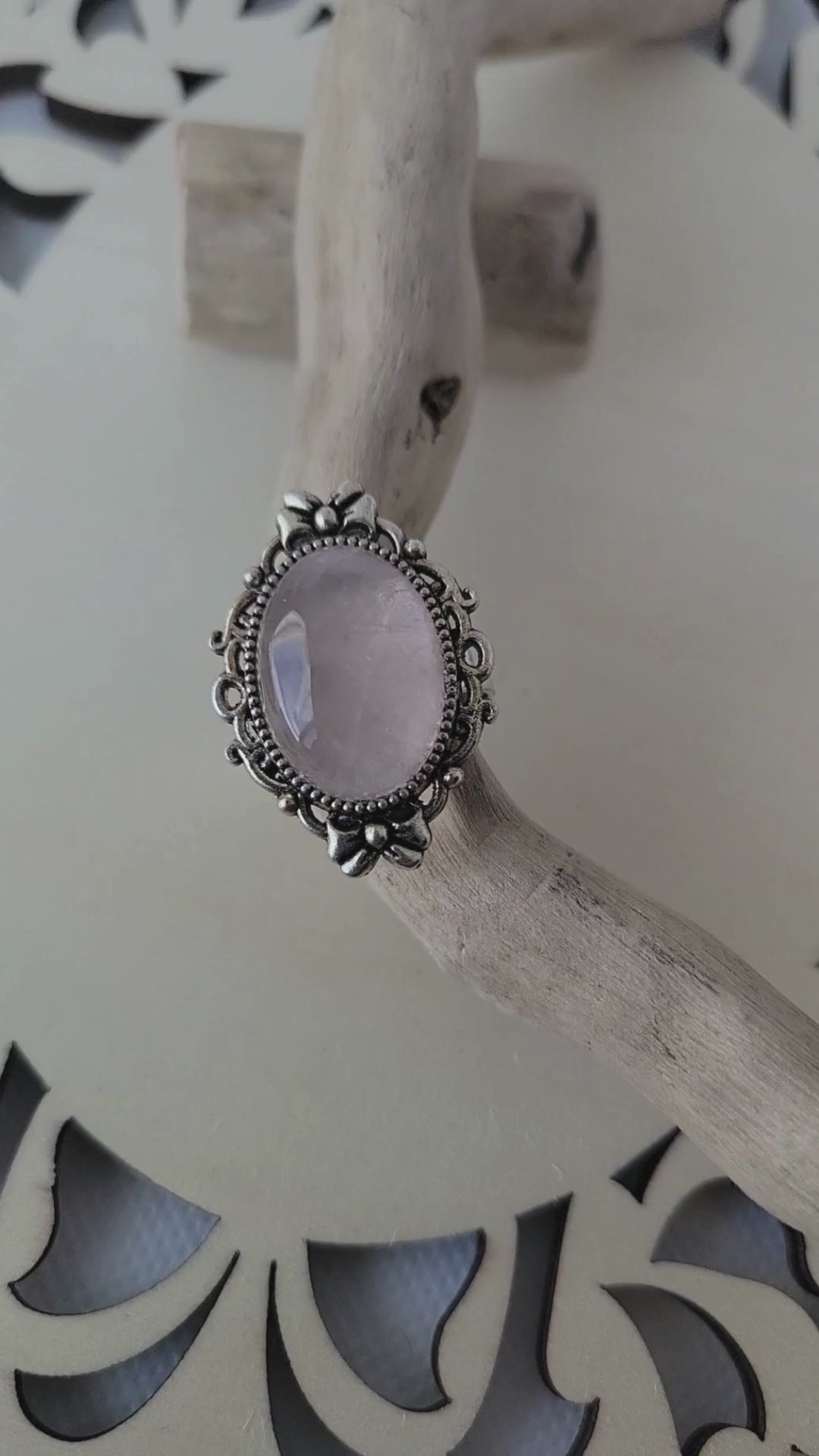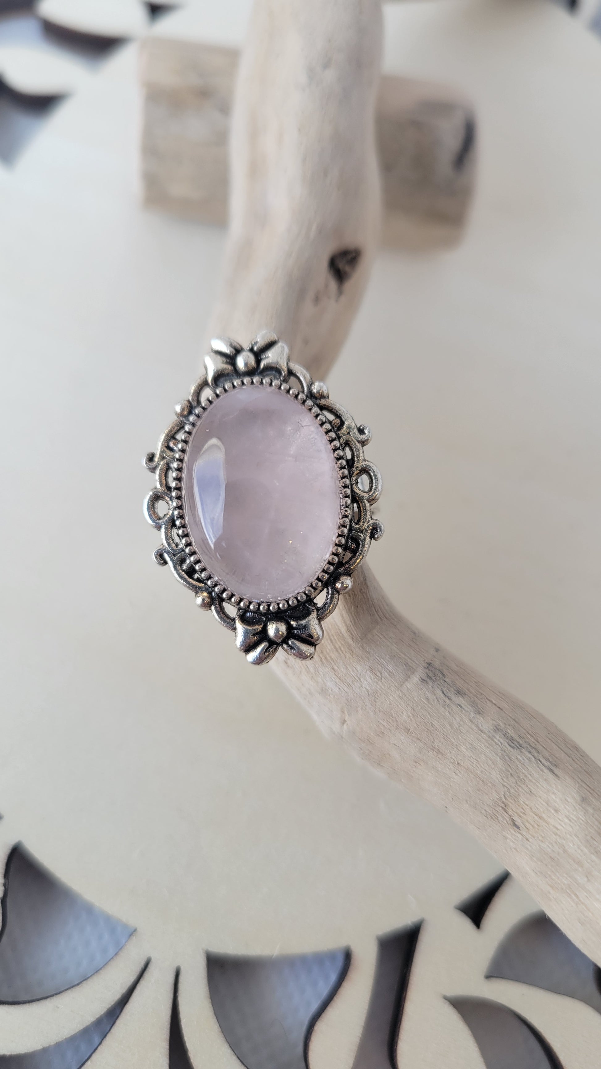 Adjustable rose quartz ring