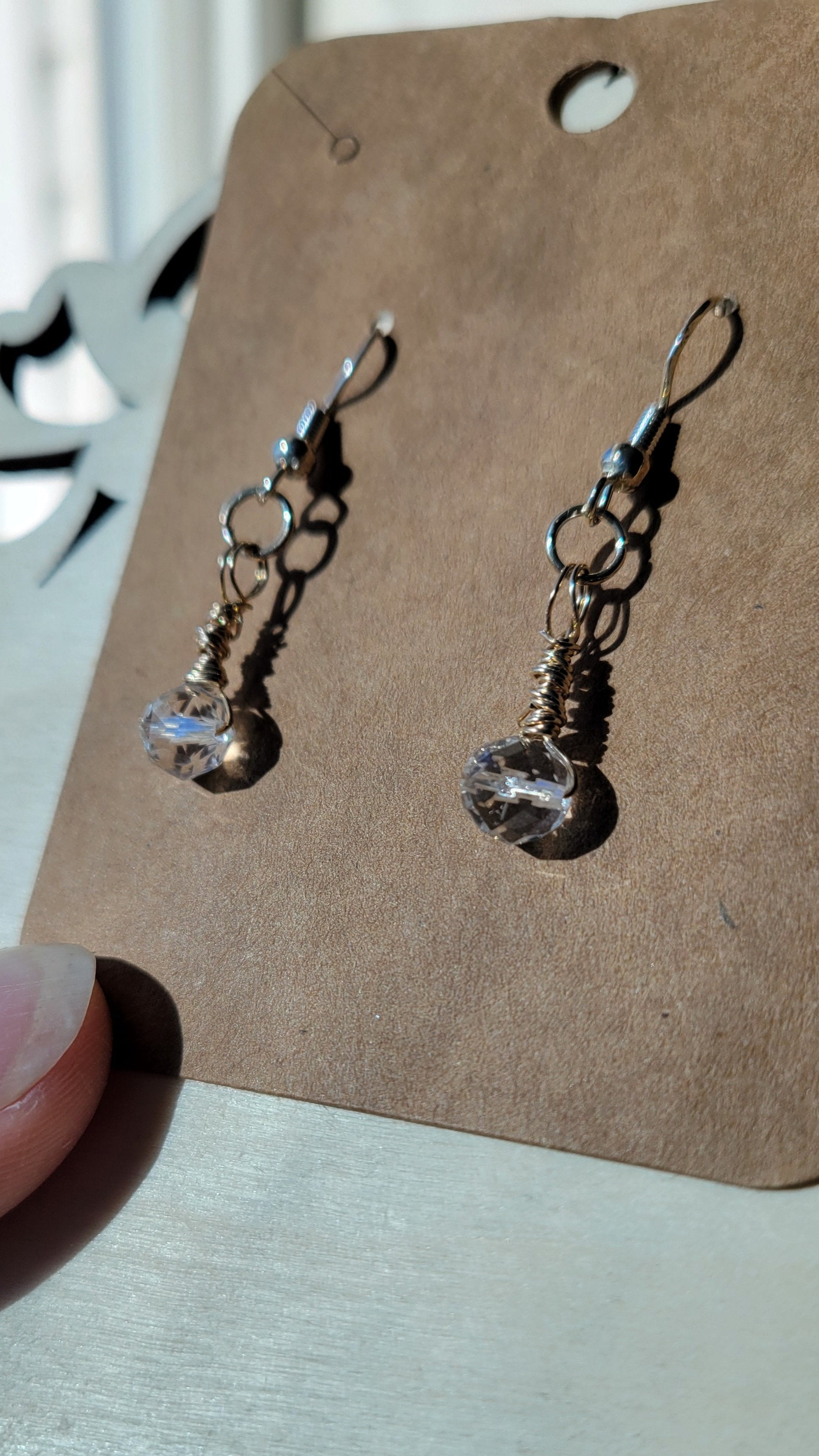 Clear quartz crystal earrings, sterling silver, dangle earring