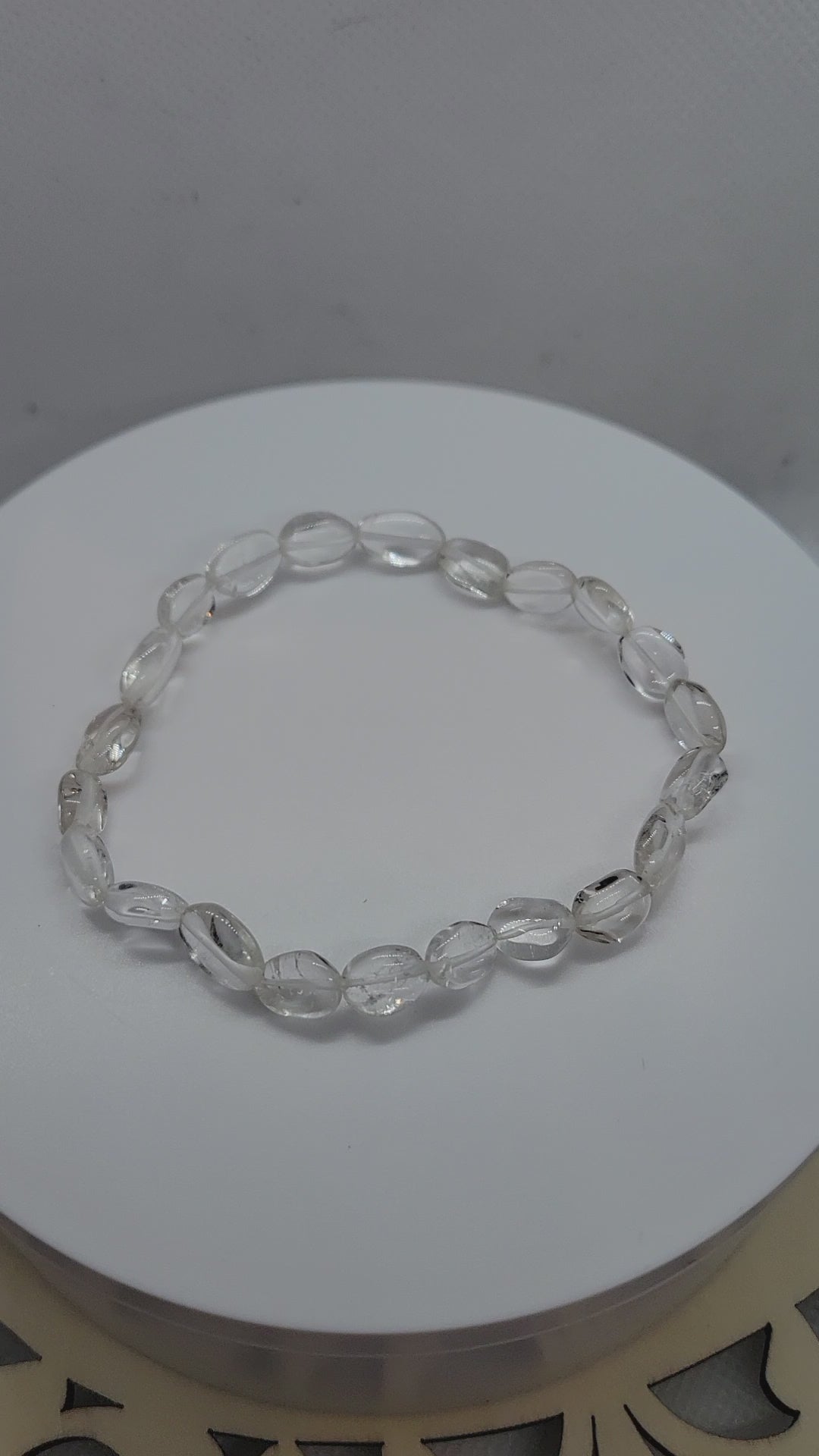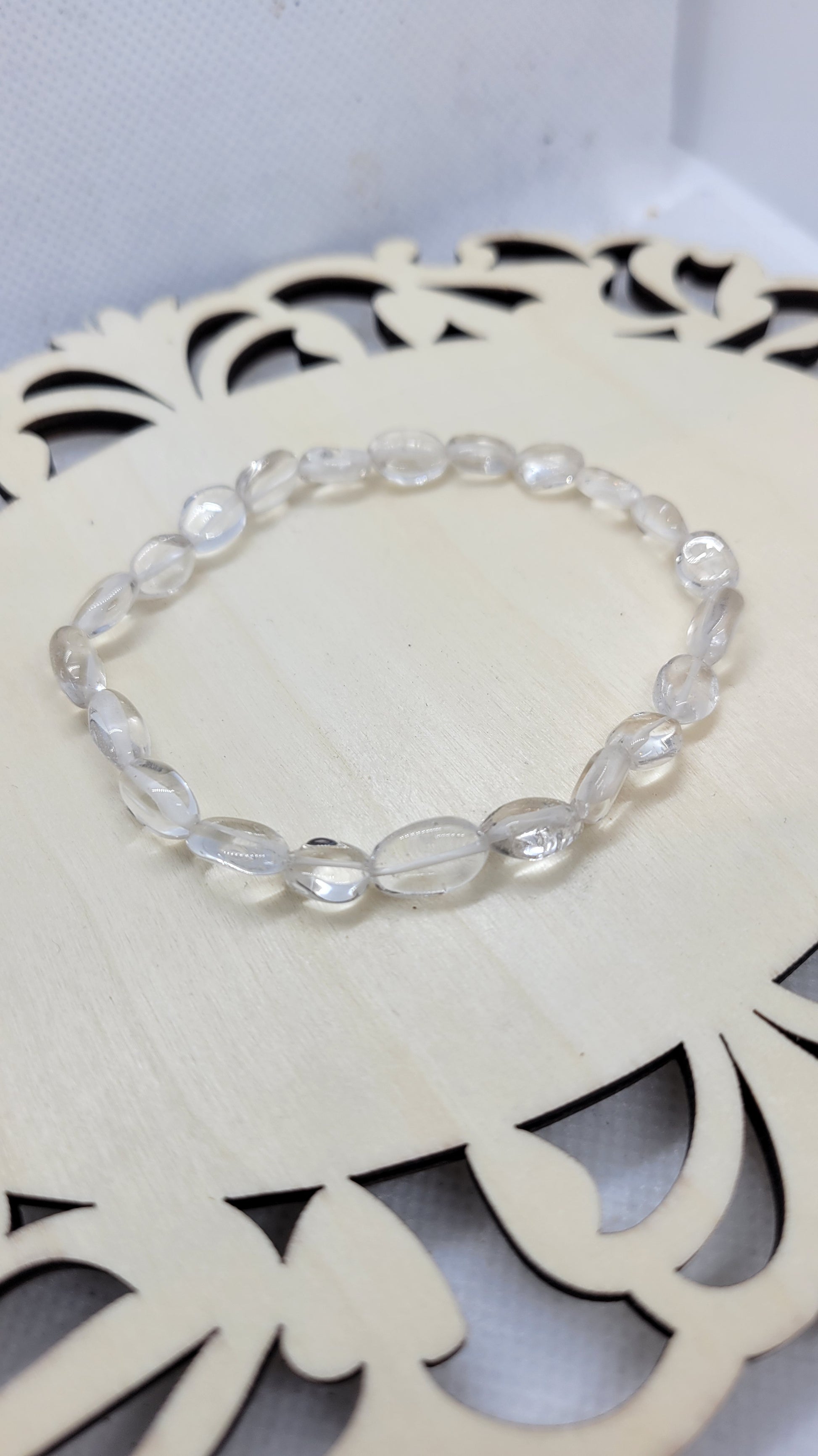 Clear quartz flat oval bead bracelet