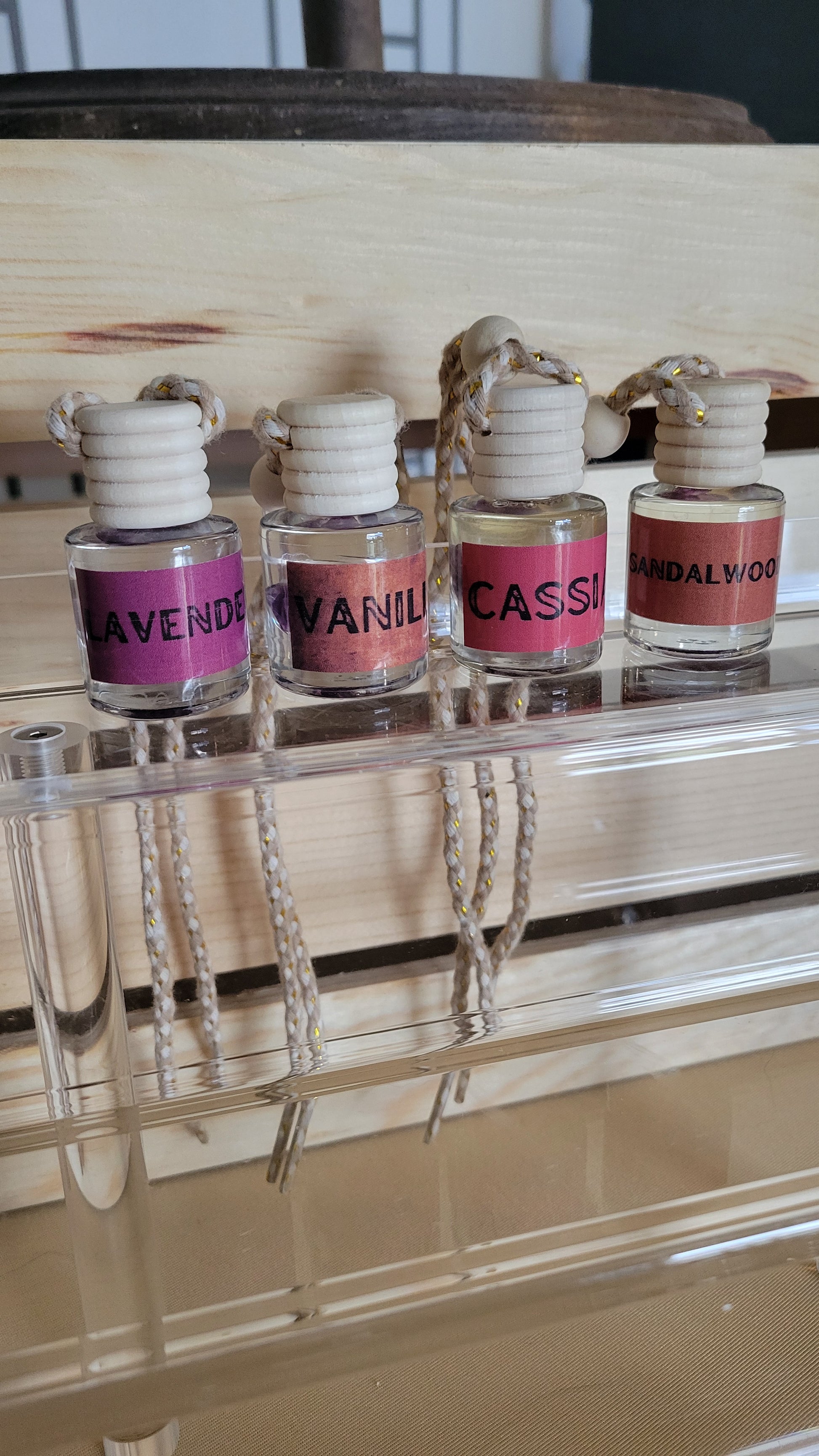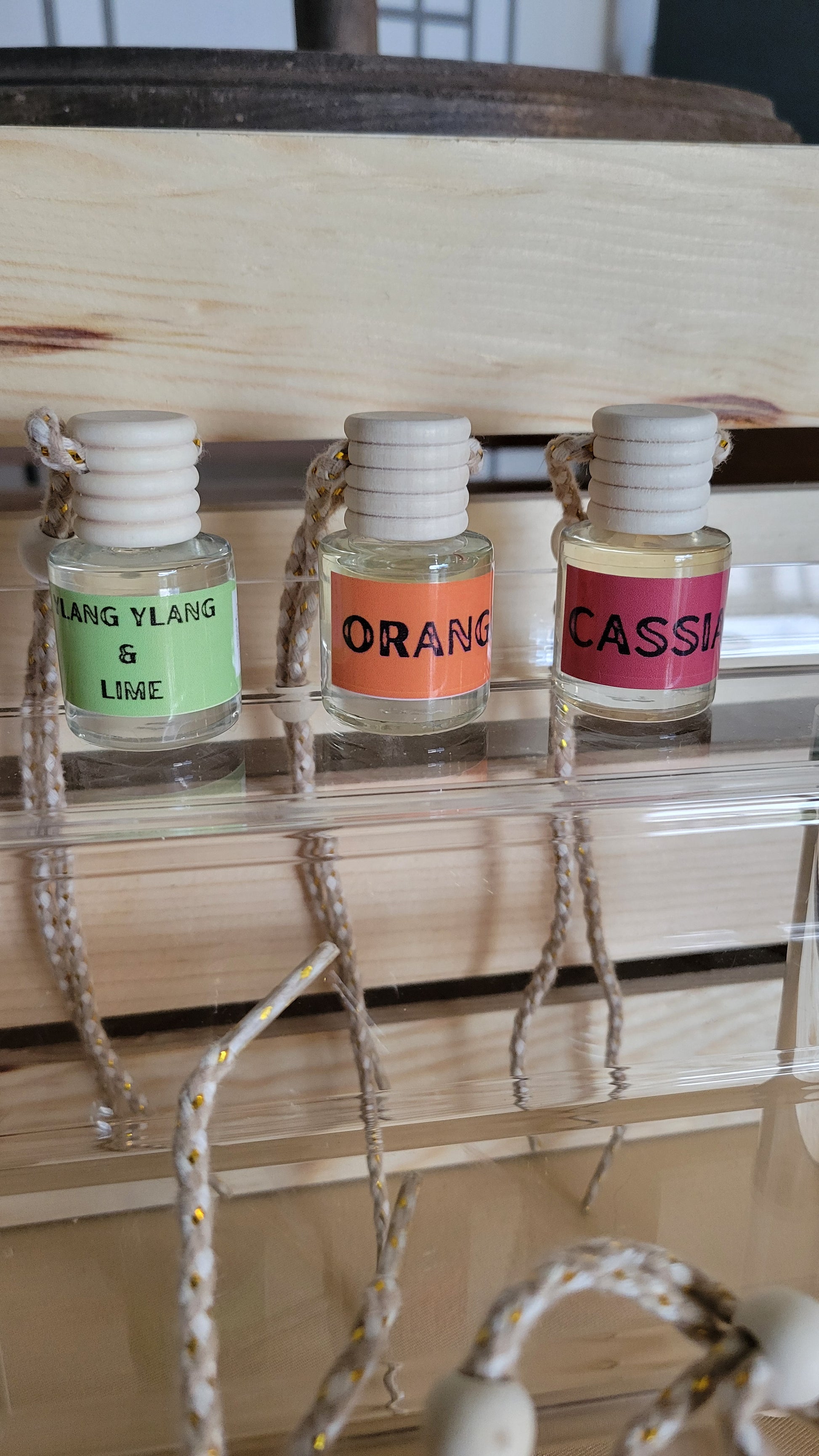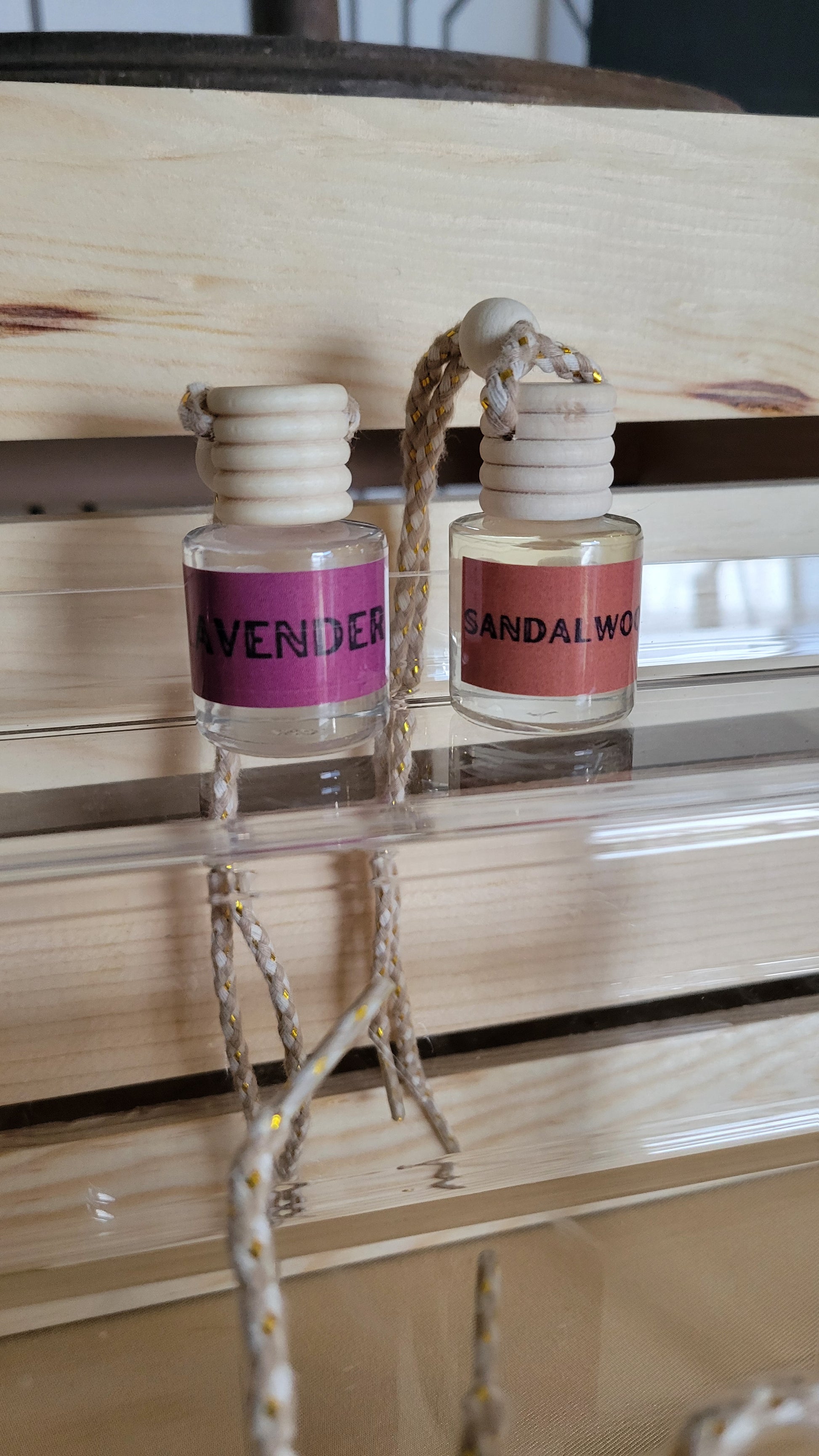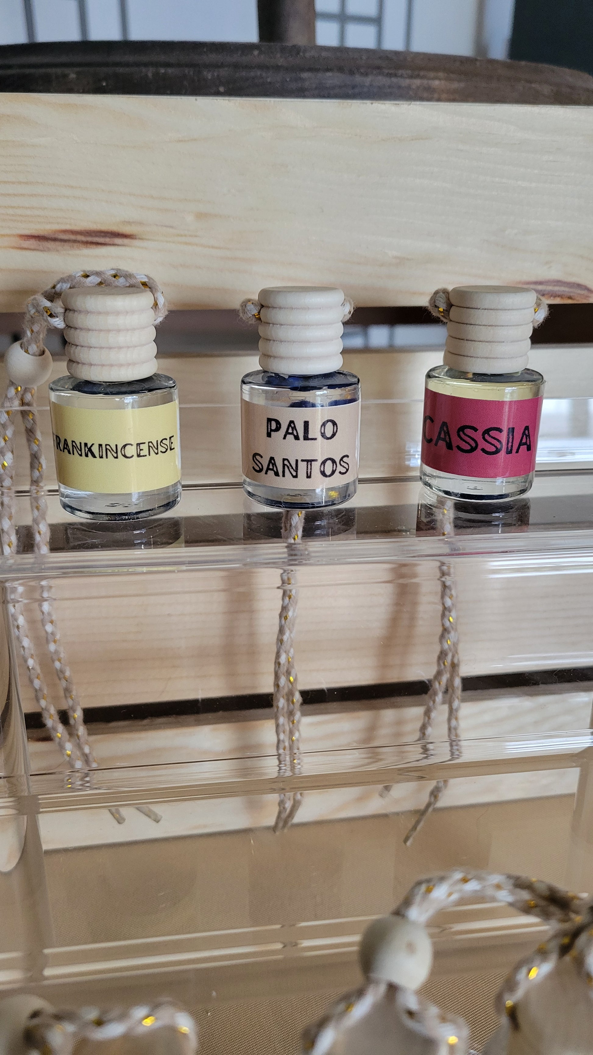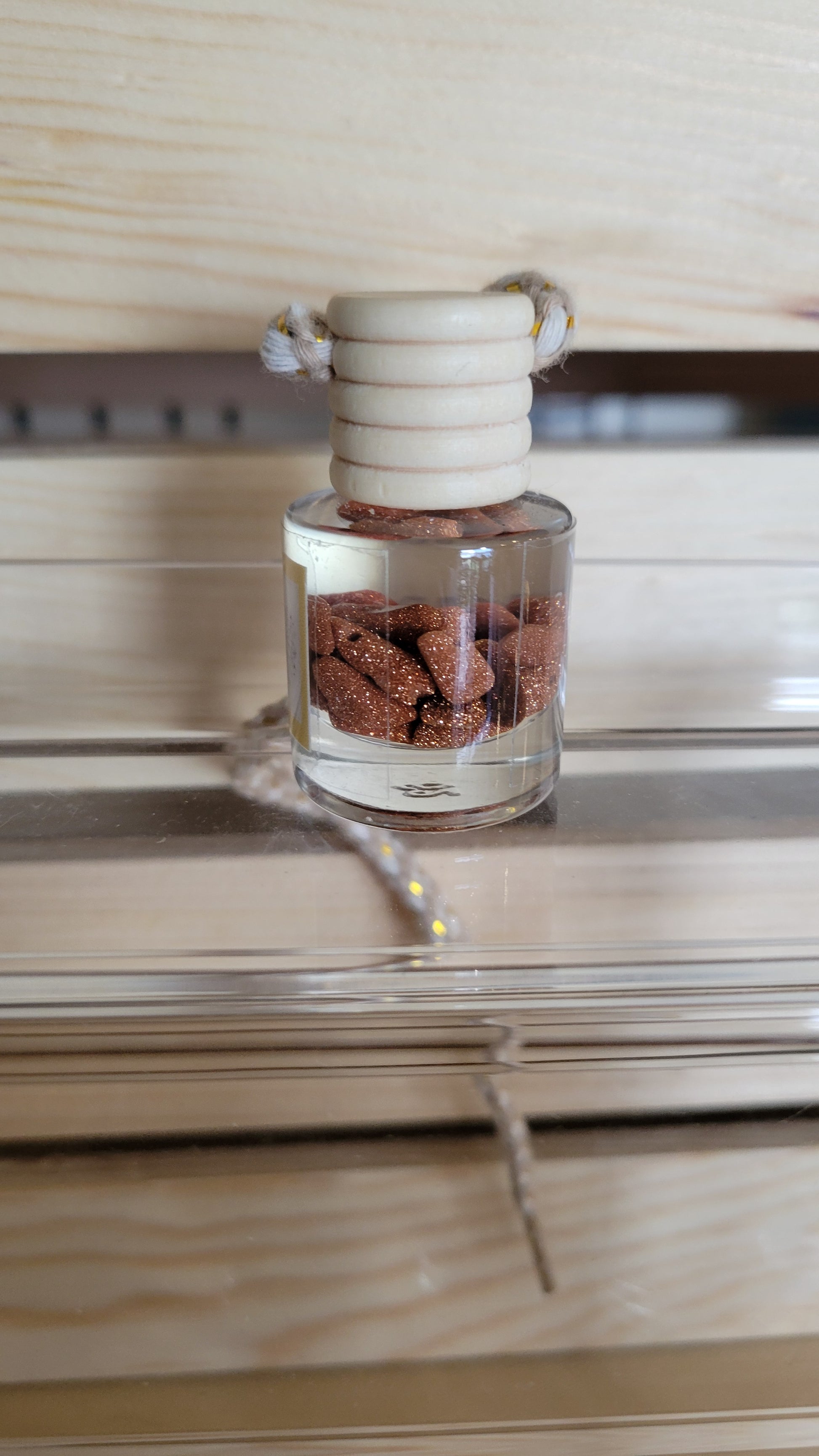 Natural car freshener. I use fractionated coconut oil and essential oil for the fragrance. I also add crystal chips for added protection.