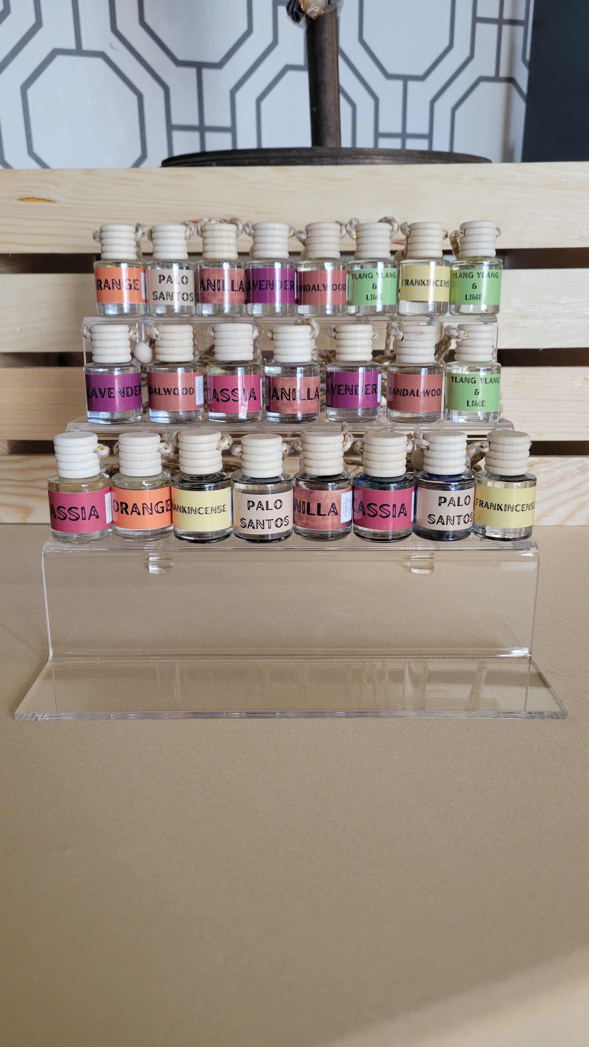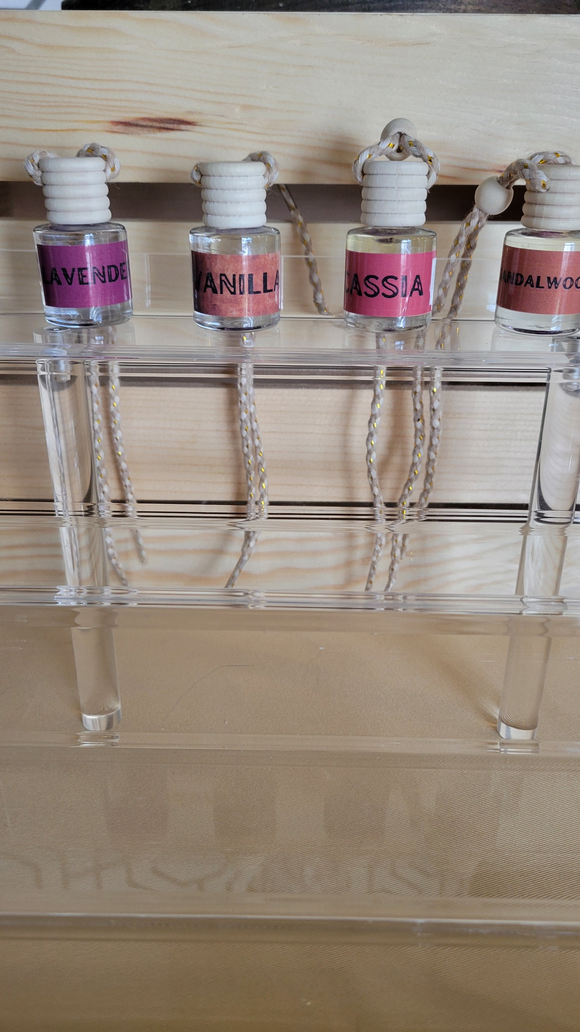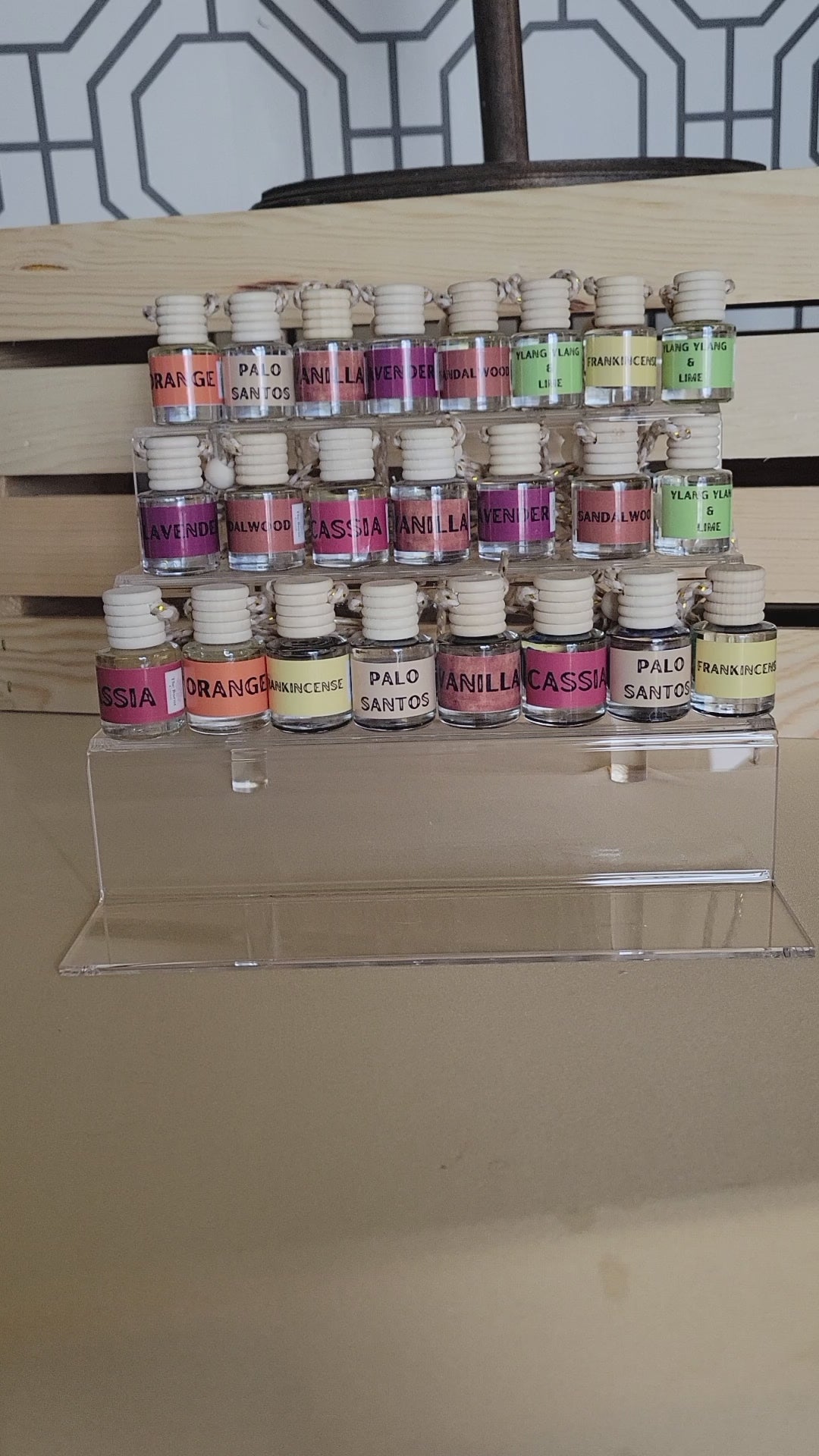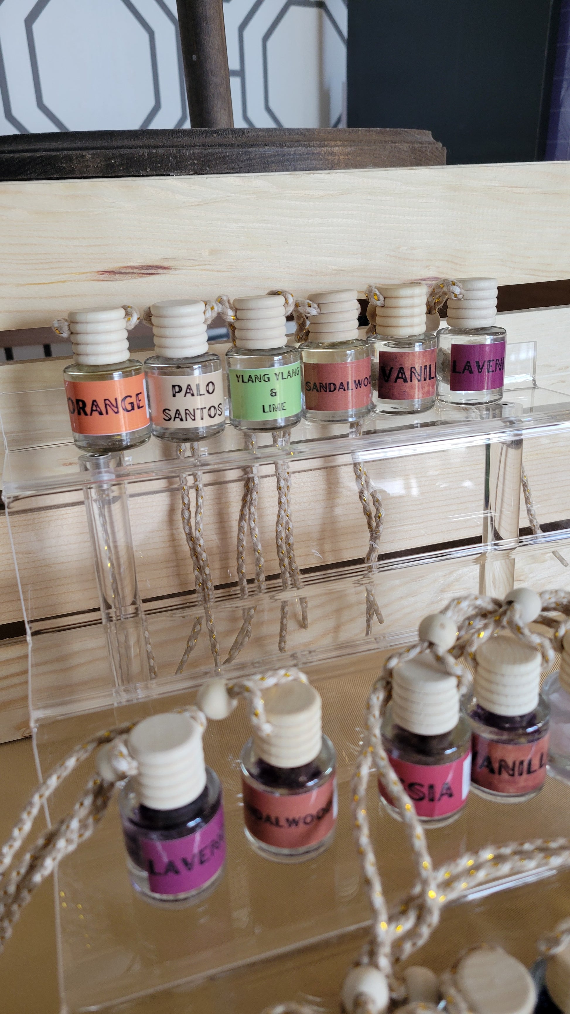 Natural car freshener. I use fractionated coconut oil and essential oil for the fragrance. I also add crystal chips for added protection.