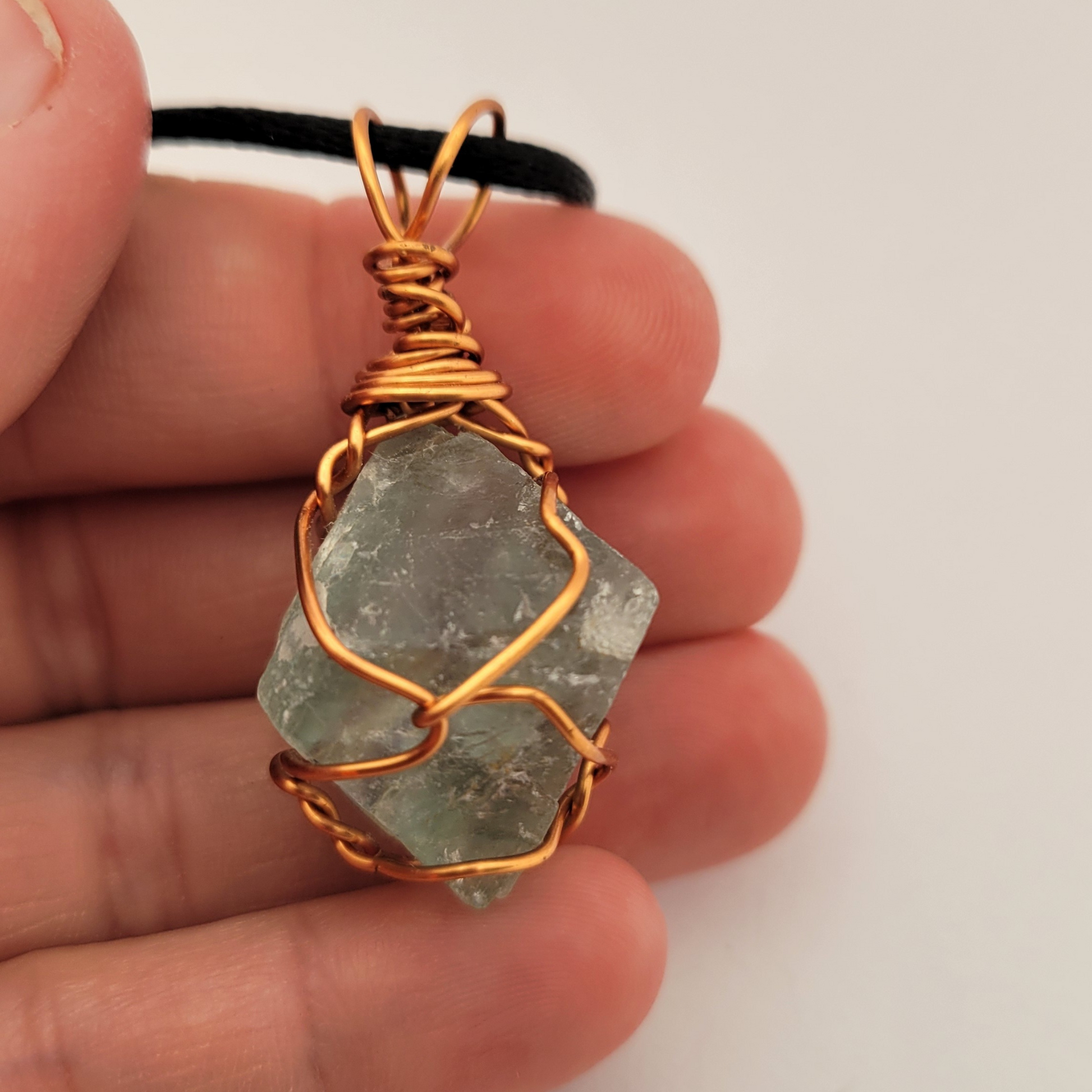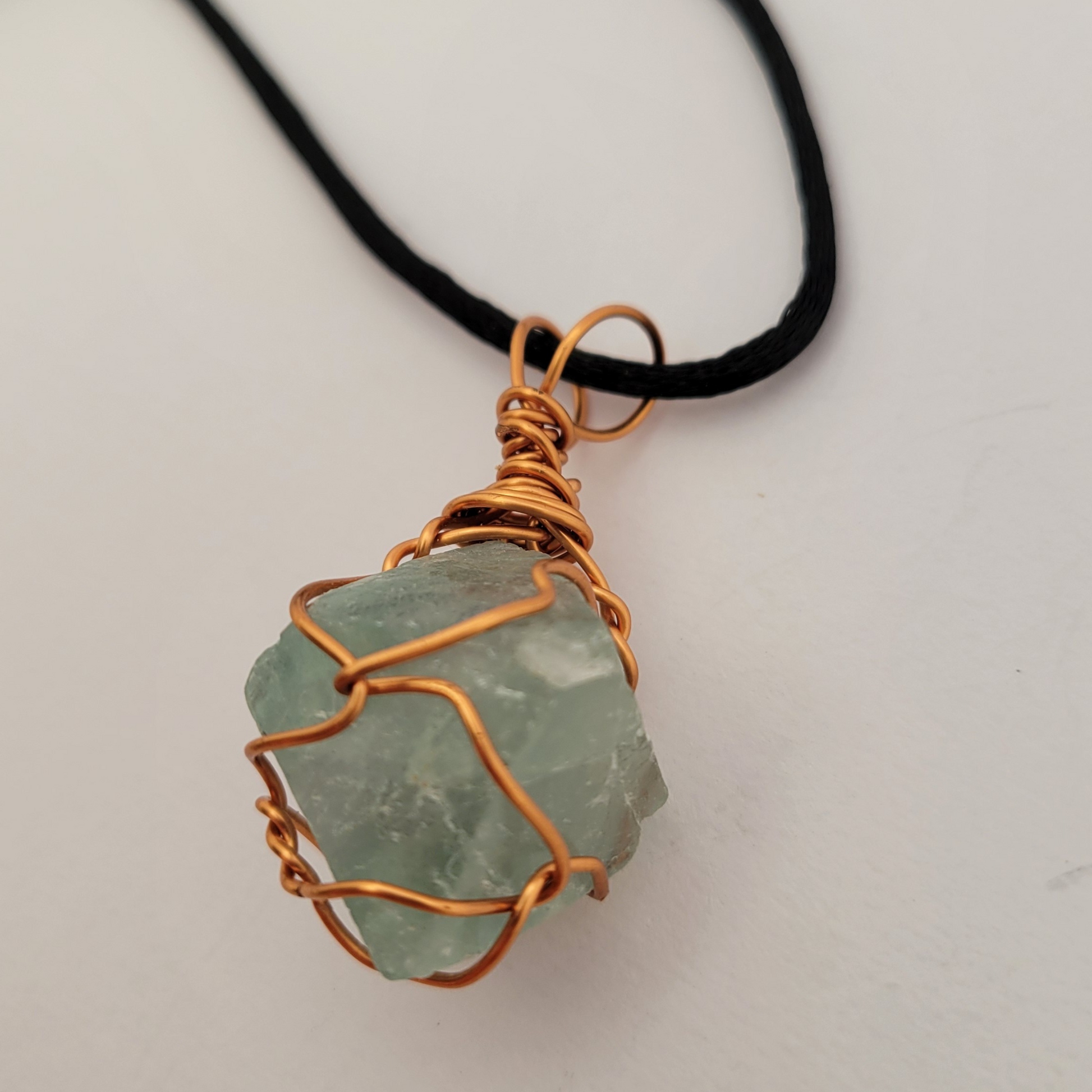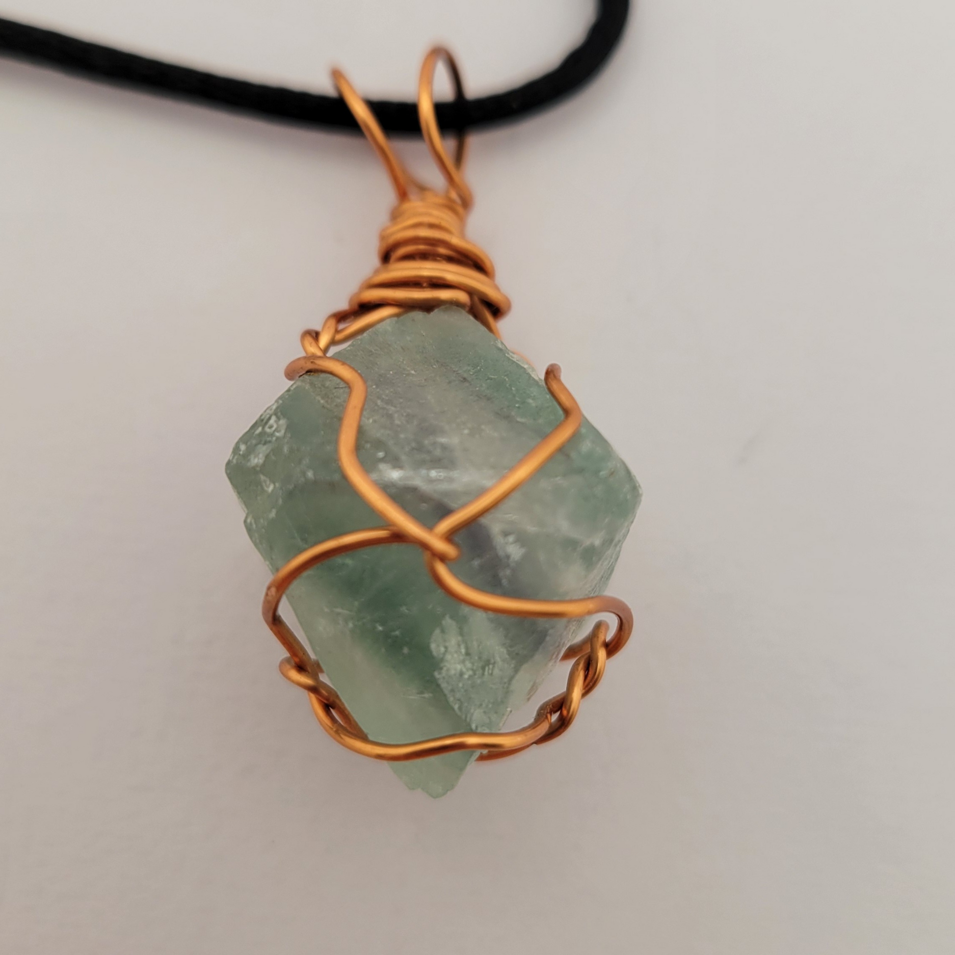 Raw Green Fluorite Pendant – Copper Wire Wrapped
