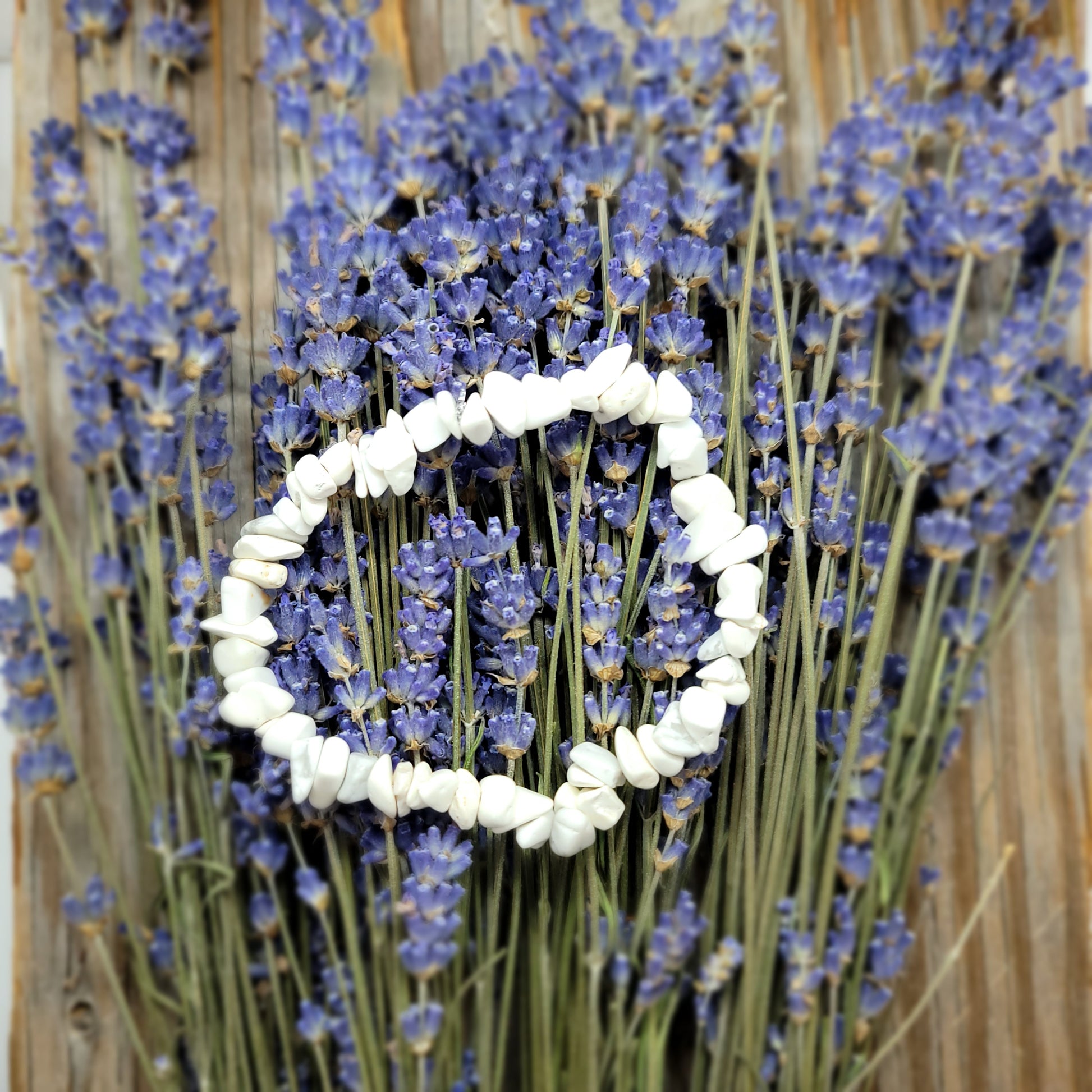 Howlite is a calming stone and helps with patience, pain and stress. It can also encourage emotional expression and awareness.