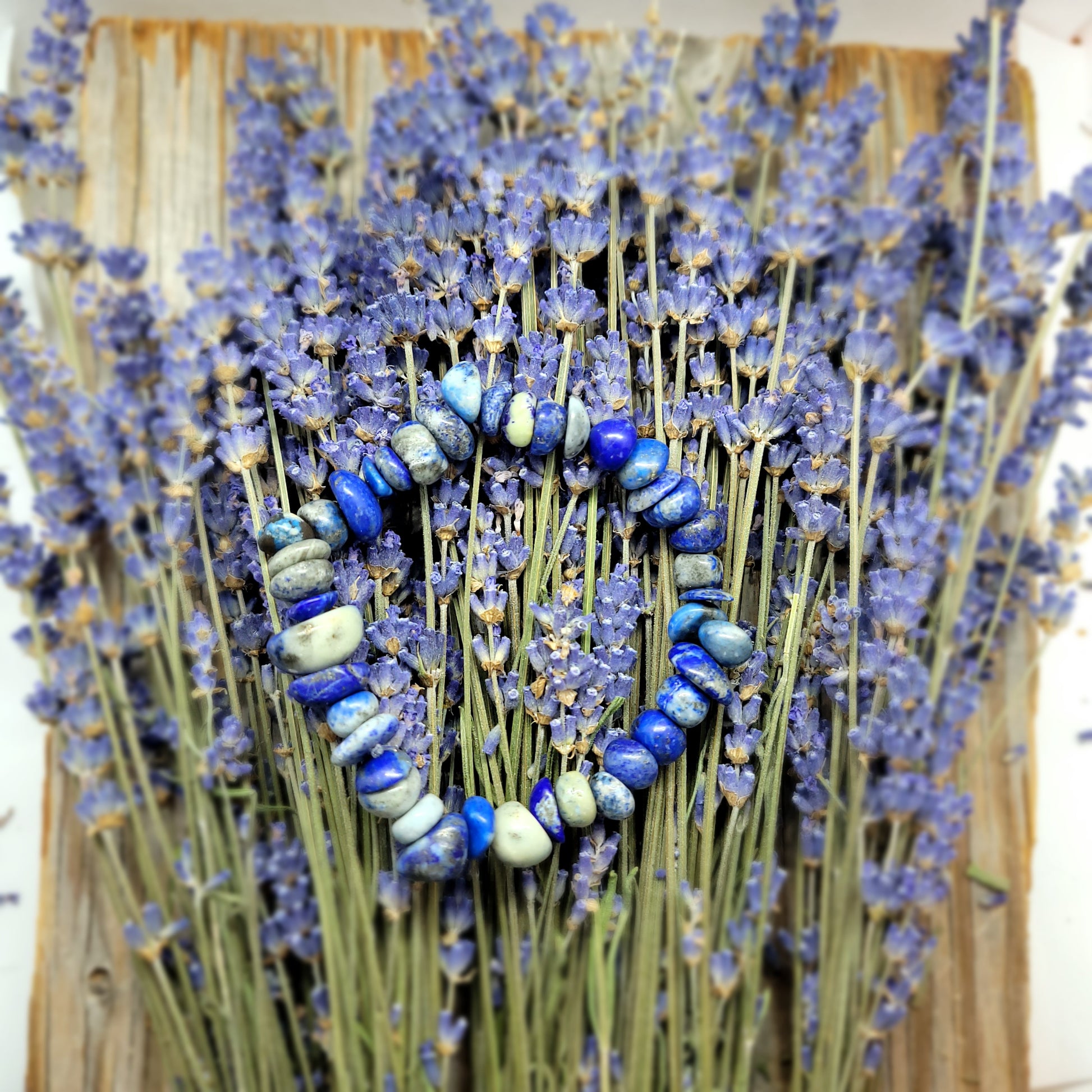 Lapis Lazuli can aid in self confidence, and self awareness. Peace and harmony are also properties of this stone.