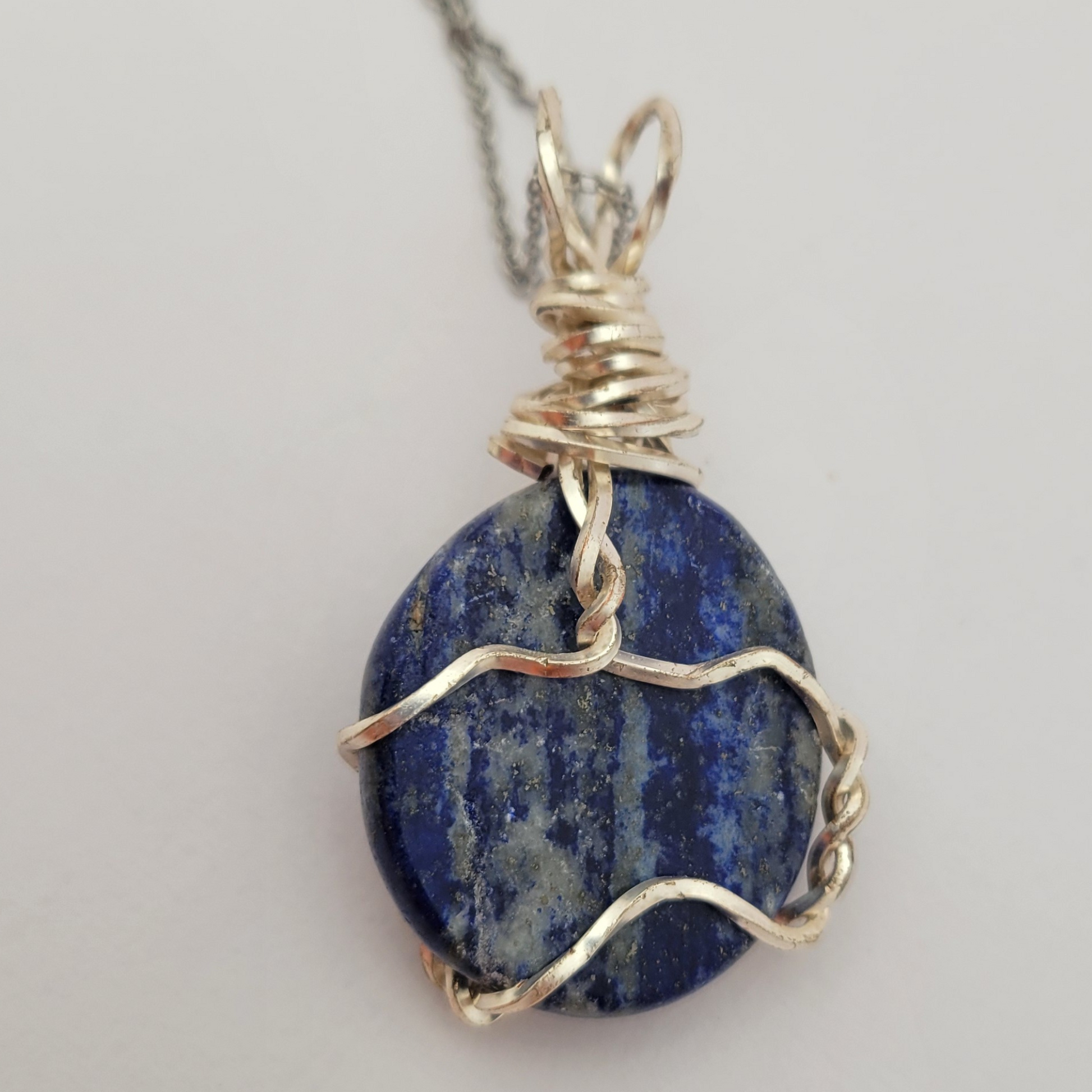 Lapis Lazuli Coin Pendant – Square Silver Wire Wrapped