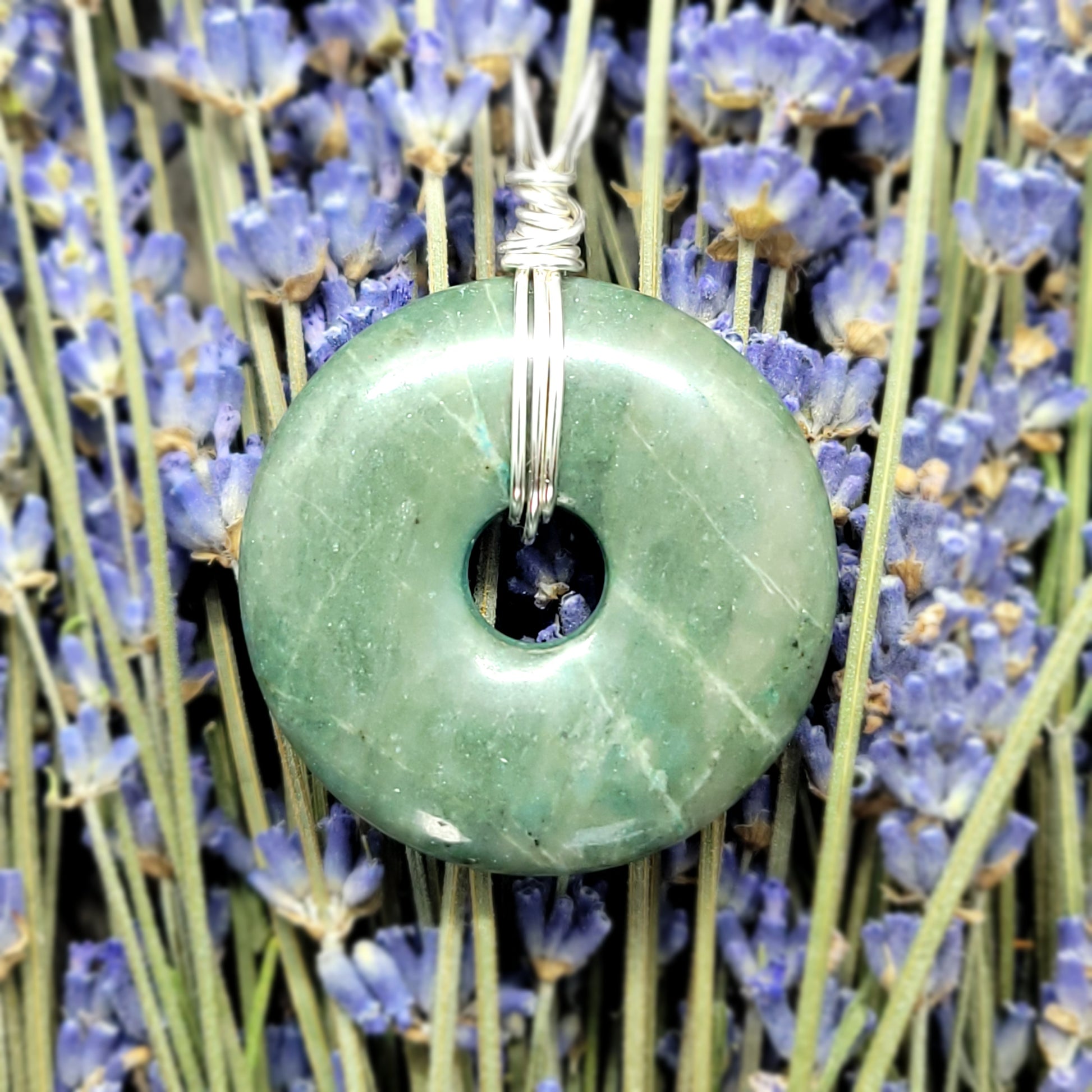 Multi jasper donut wire wrapped wit silver coated copper wire.