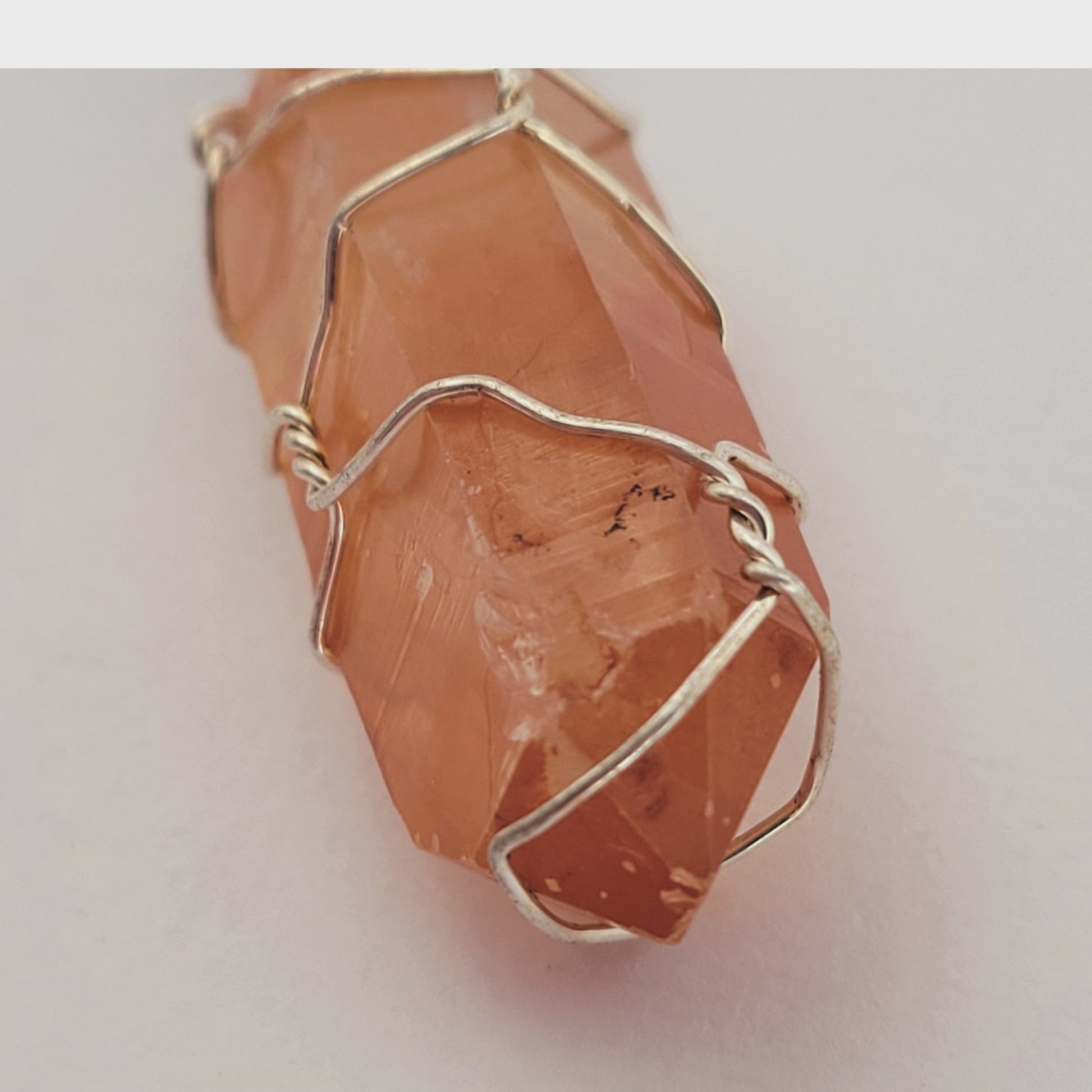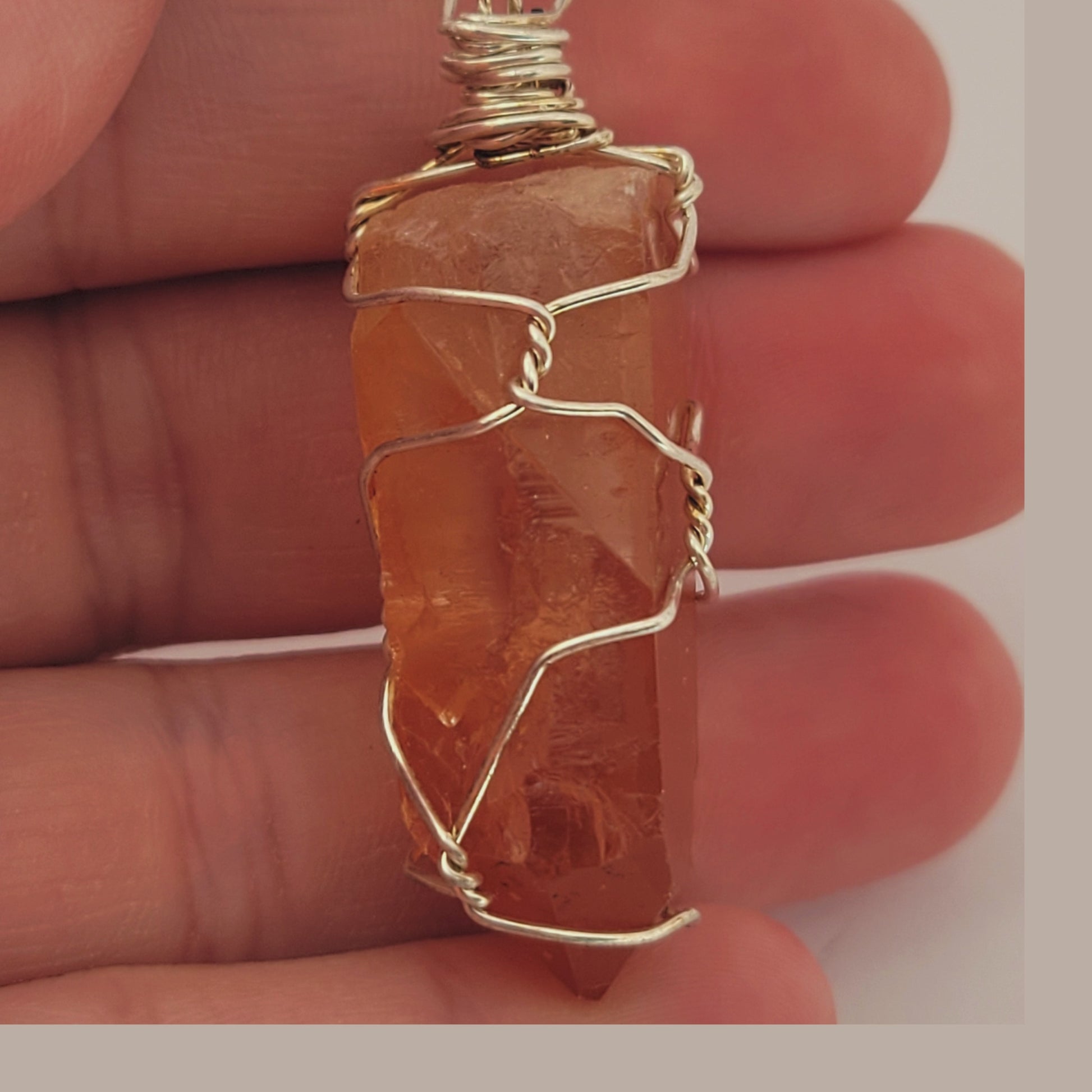 Tangerine Quartz Point Pendant – Silver Wire Wrapped