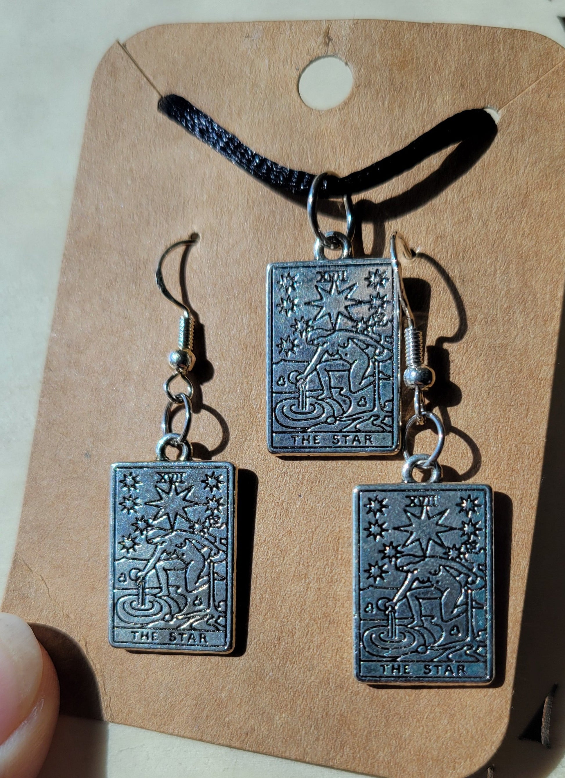 Tarot card necklace and sterling silver tarot earrings